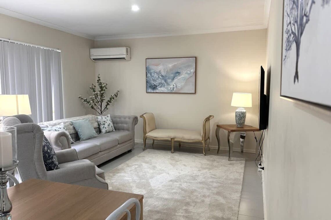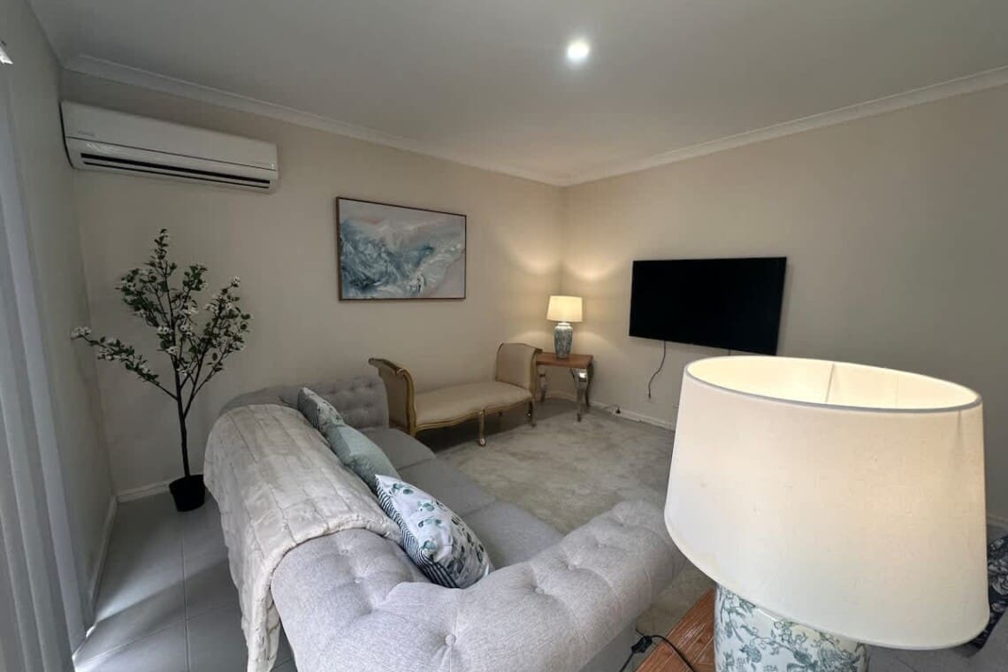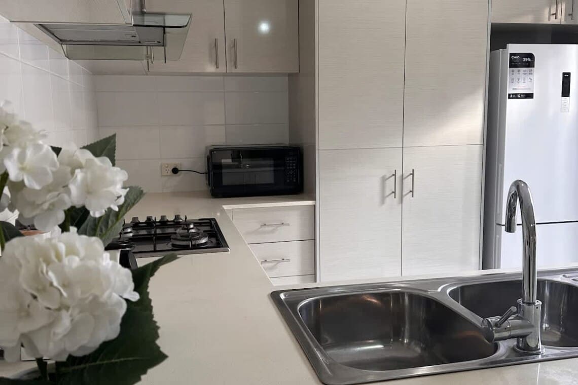 A private dream home in the BEST suburb! A pristine oasis —our 3BR, 2BA gem has double lock-up garage & private courtyard. New build, gleaming floors, modern full kitchen – oven, fridge, dishwasher, microwave, coffee machine, 3 serene bedrms +2 bathrms. Enjoy the lush cosy space w/ beautiful living & dining area, large Smart TV & FREE WI-FI. Unpack & Unwind. Conveniently located in a quiet neighborhood, our home offers the perfect blend of comfort and convenience. Come Home to Stay!