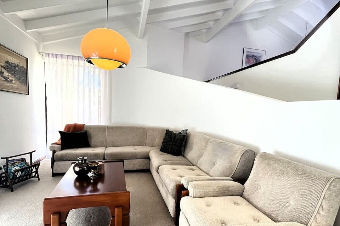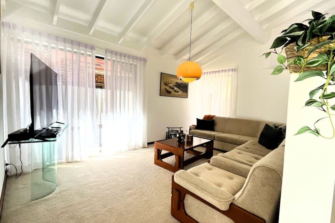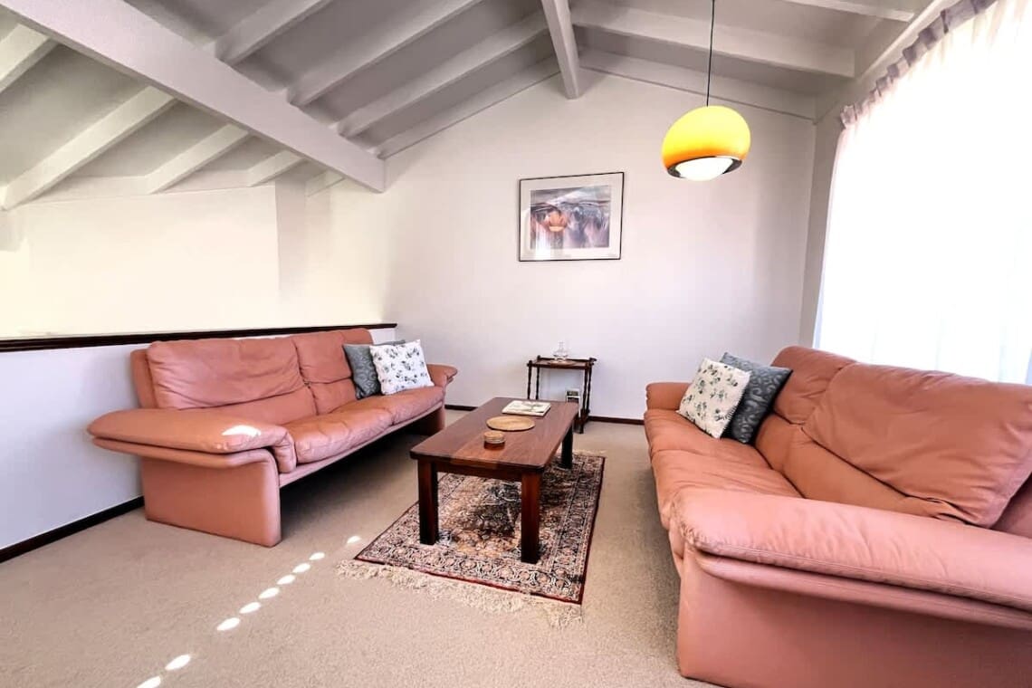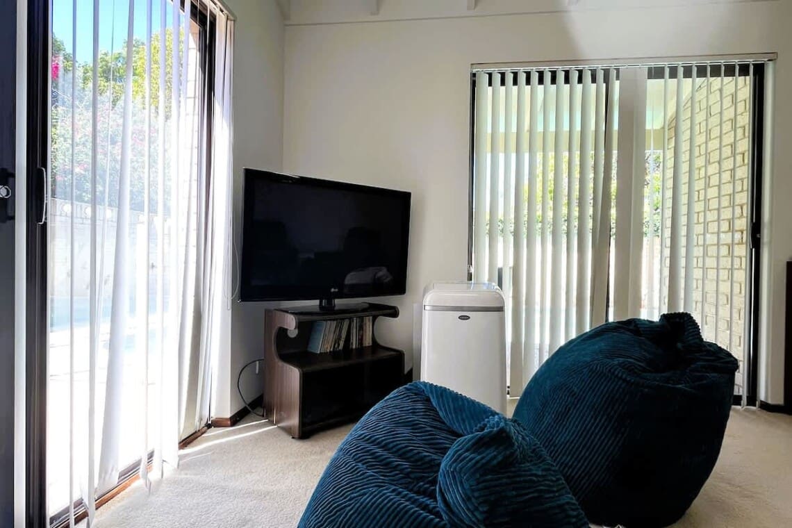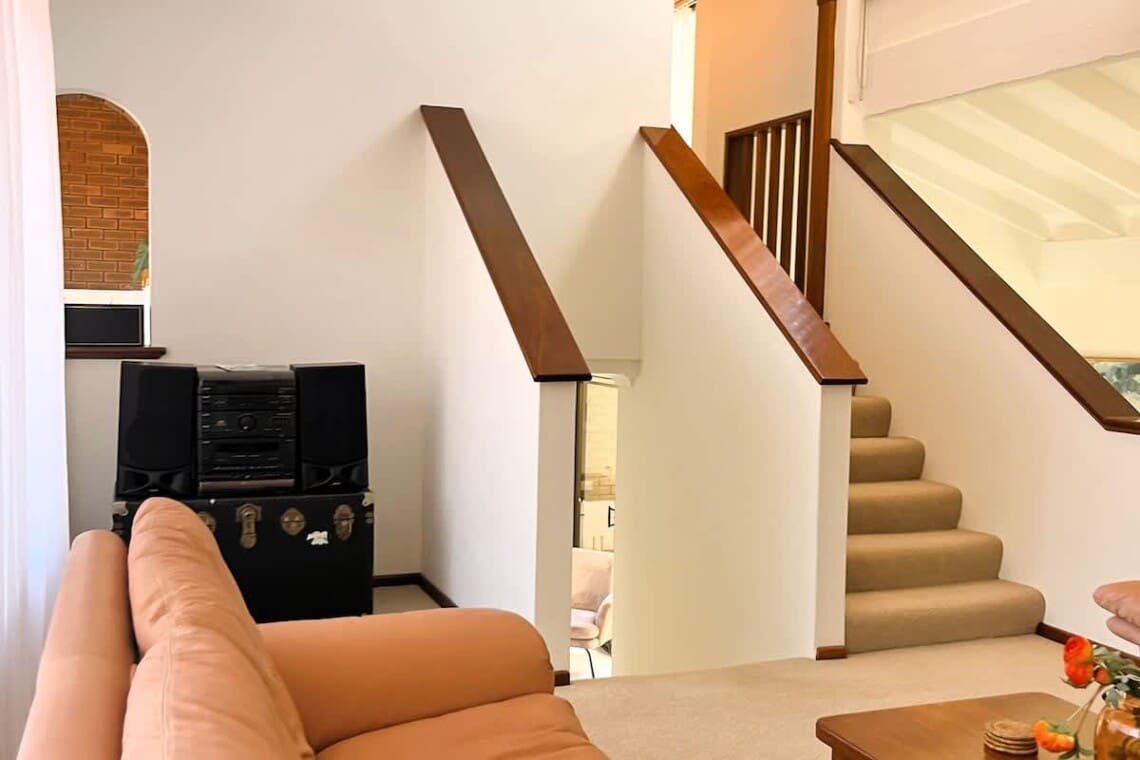 2 separate living areas – one with large screen Smart TV, one upstairs with stereo for listening to music.