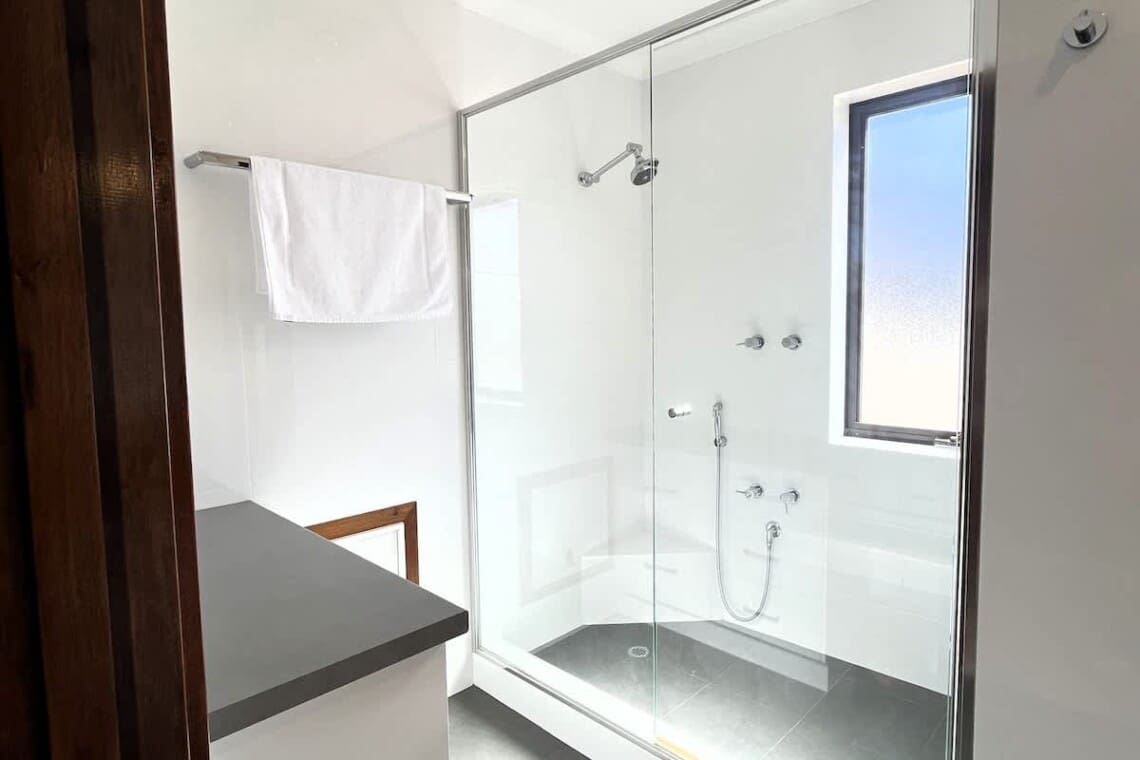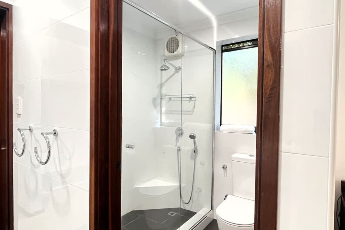 2 Full Size Bathrooms both have shower, vanity & toilet. Plus a third, separate toilet in rumpus room.
