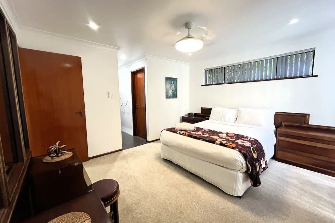 Master bedroom – 1 x Queen Bed & walk in wardrobe & ensuite bathroom
