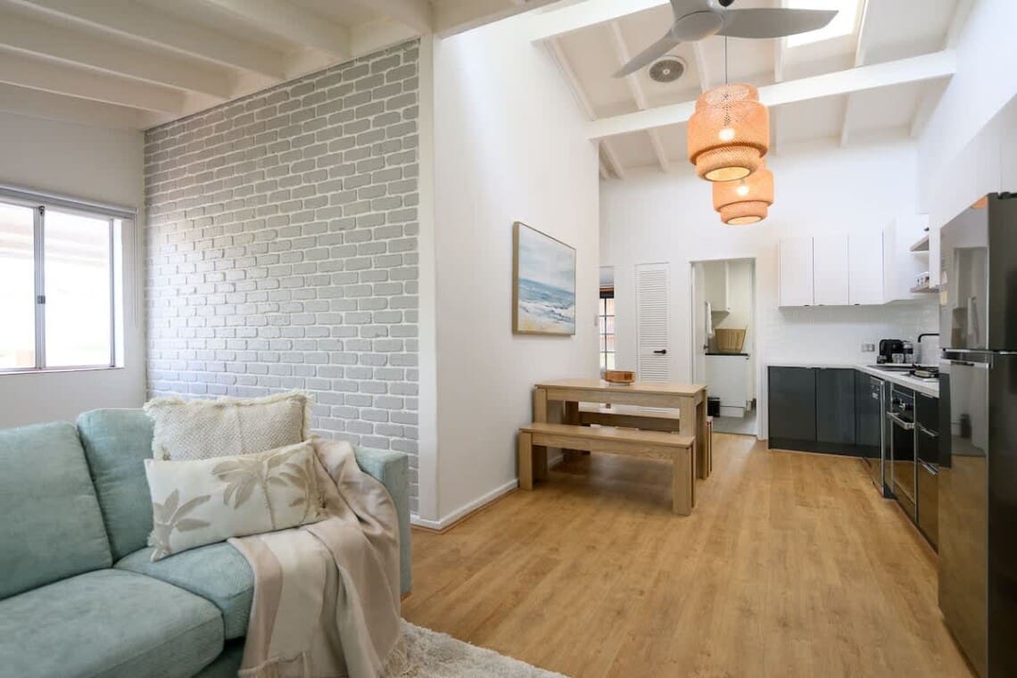 Relax and unwind at our Beach Baby Bungalow Bliss! Set in a perfect location between land & sea, our bungalow has 2 BRs, 1 BA, full kitchen, full laundry & private garden. Only 2kms from 2 of Perth’s beautiful beaches, Scarborough & South Trigg, bring a car if needed to enjoy FREE parking. Less than 2kms to Karrinyup Shopping Centre with shops, restaurants, movies, archie brothers bowling & mini golf. Make our Bungalow the perfect base to stay and explore. Come Home to Stay!