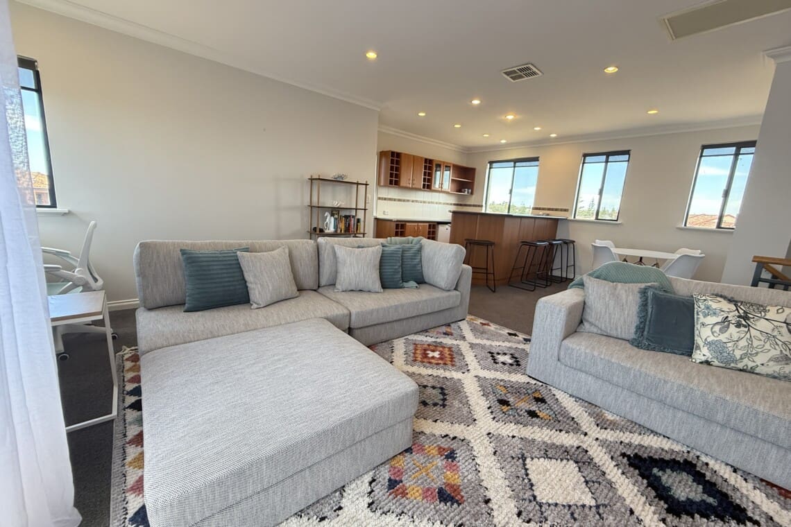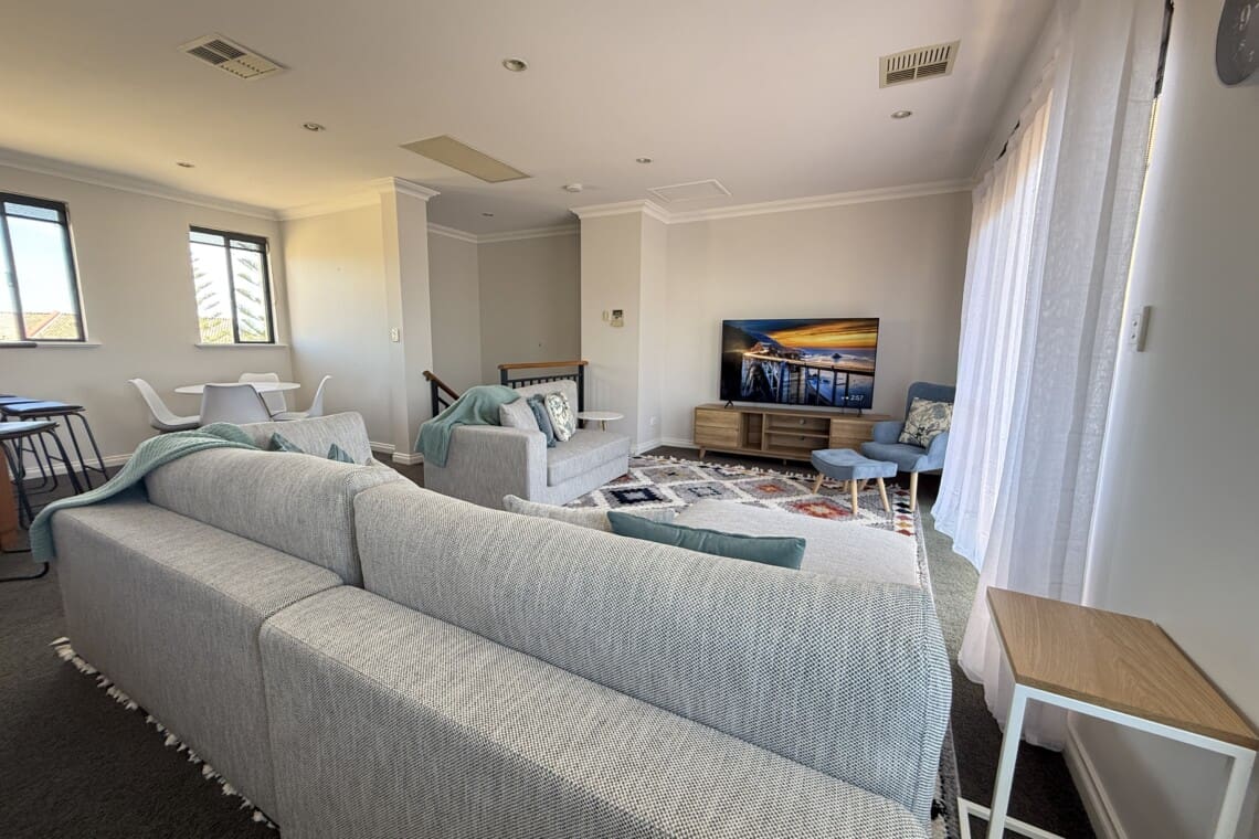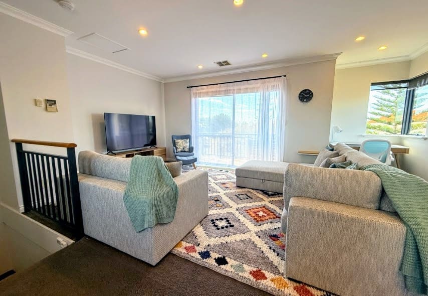 Close to Mandurah Foreshore & Dawesville Cut, our spacious 3-level coastal home offers 4 bedrms, 3.5 bathrms & two living areas for a relaxed vibe. Modern comforts, full kitchen, Wi-Fi, Aircon throughout PLUS secure parking for 2-cars. Beach is across the road for sunrise & sunset strolls, w/shops & dining moments away. Ideal for families or corporate guests seeking beachside convenience w/room to unwind, space to work, or entertain in style near Mandurah’s calm shores. Come Home to Stay!