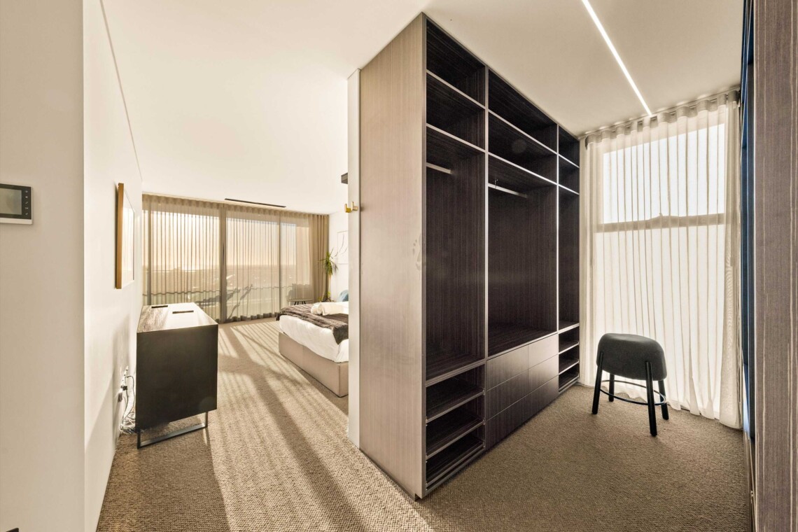 ⇾ Corporate and longer stays: Ample wardrobe storage, hanging space, hangers, WiFi, comfortable seating for laptop work and easy access to Fremantle and the Perth CBD